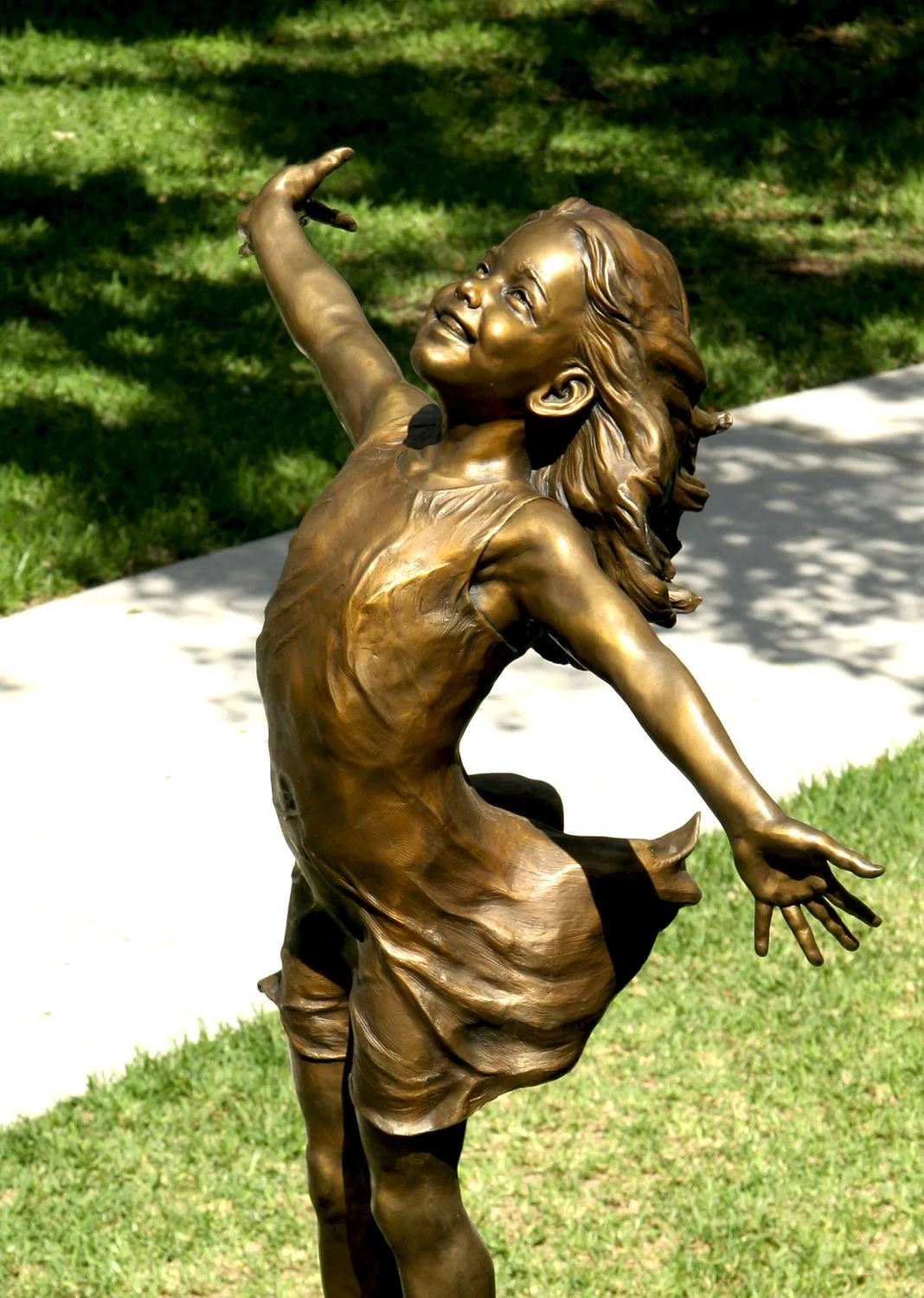 This sculpture radiates the pure, unbridled joy of childhood exploration and discovery. 'Joyful' is a heartwarming reminder of the boundless wonder that comes with each new day, inviting us to join in her zest for life.