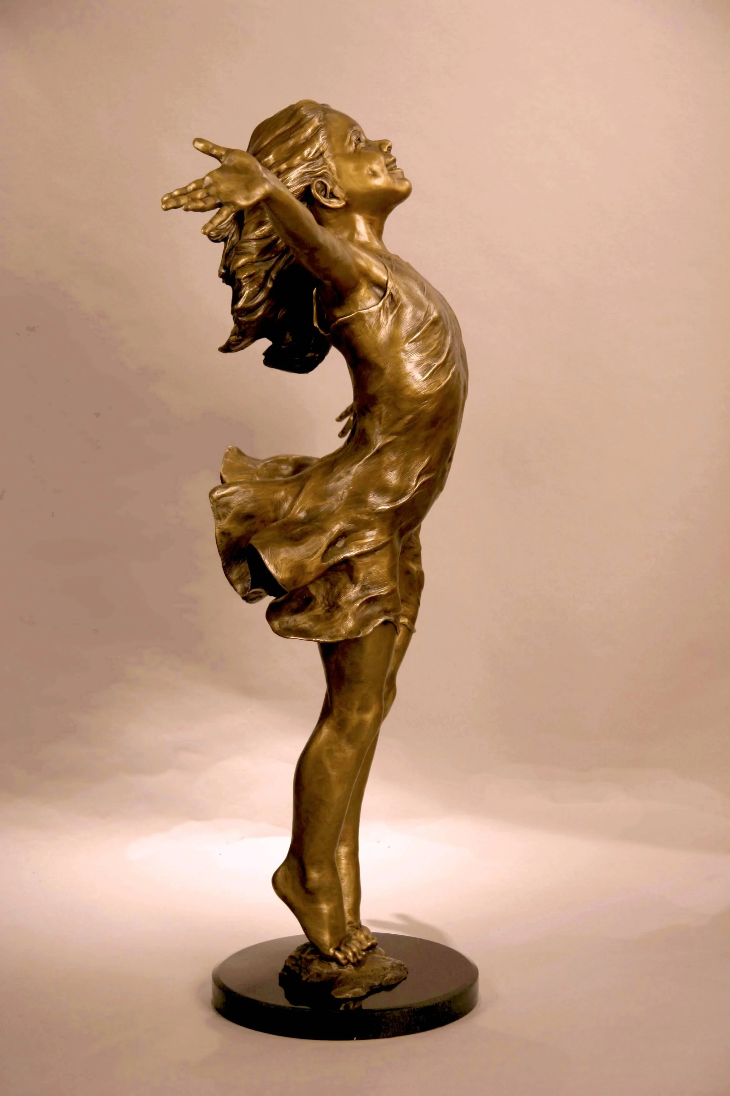 With arms outstretched in an exuberant embrace of life, 'Joyful' embodies the vivacious spirit of a young girl.