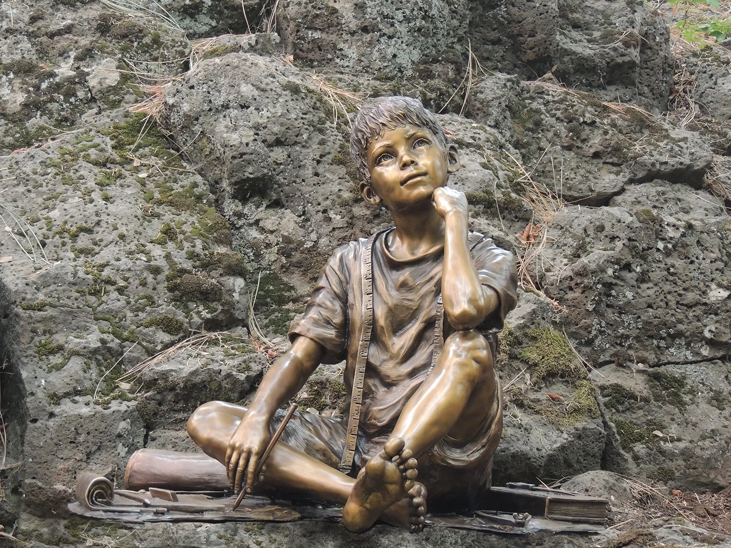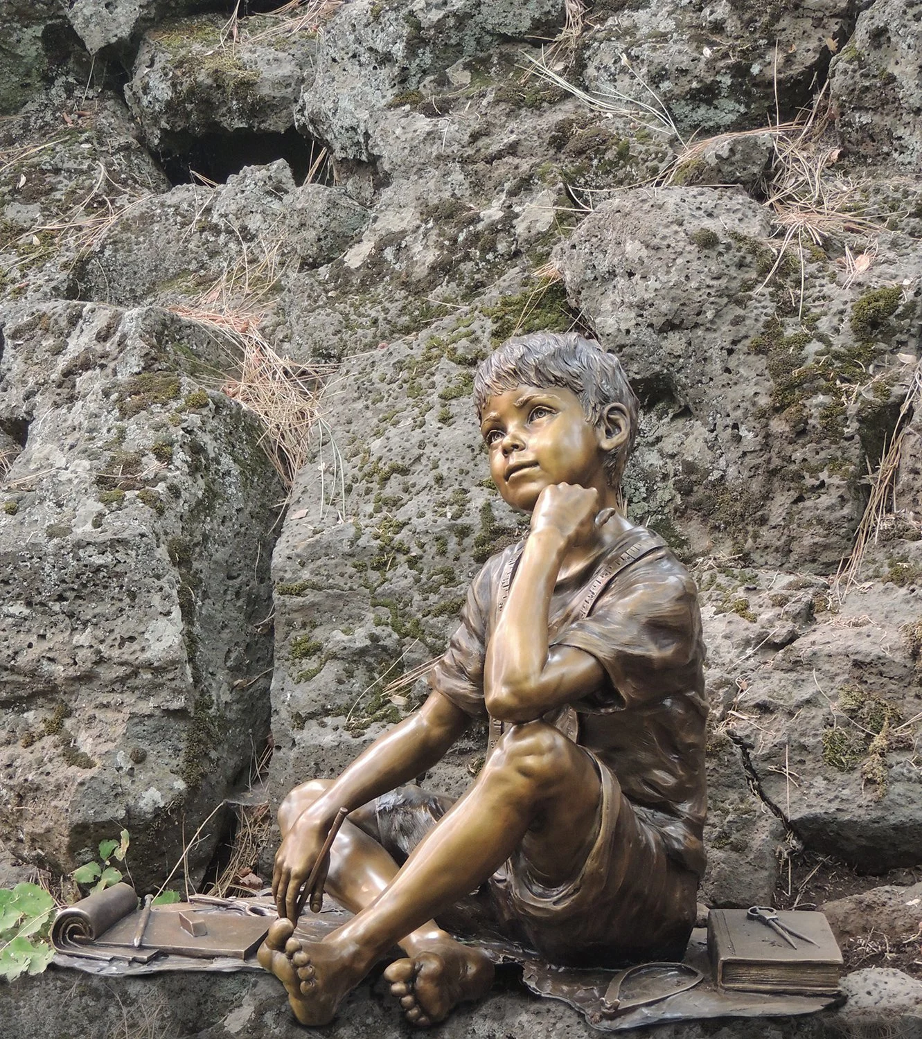 Surrounded by his tools of creativity, this bright young visionary contemplates his next original masterpiece.