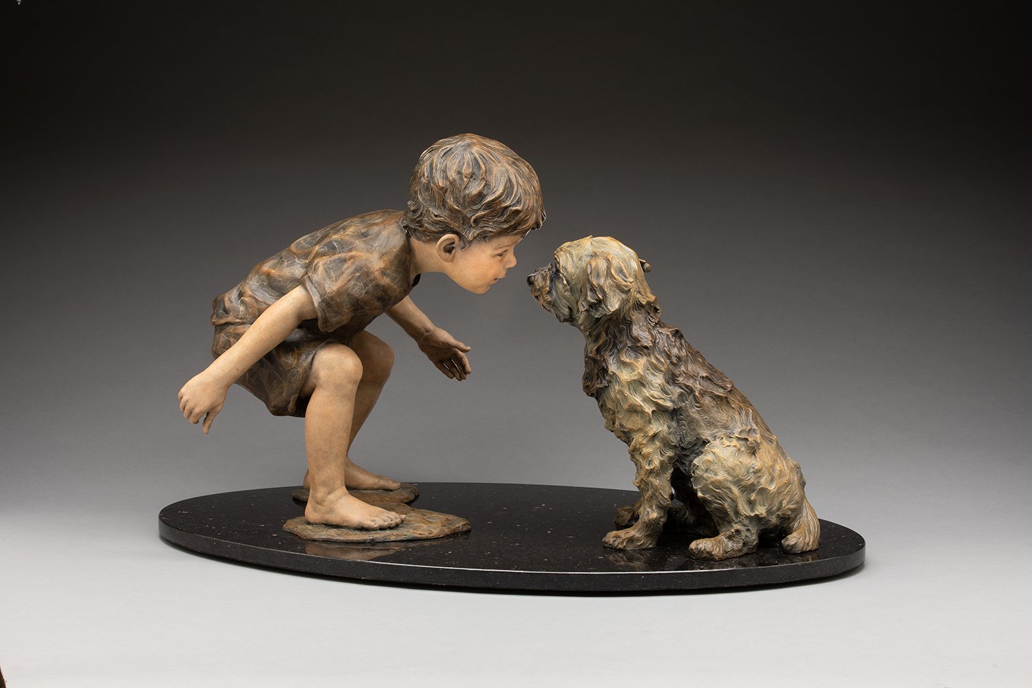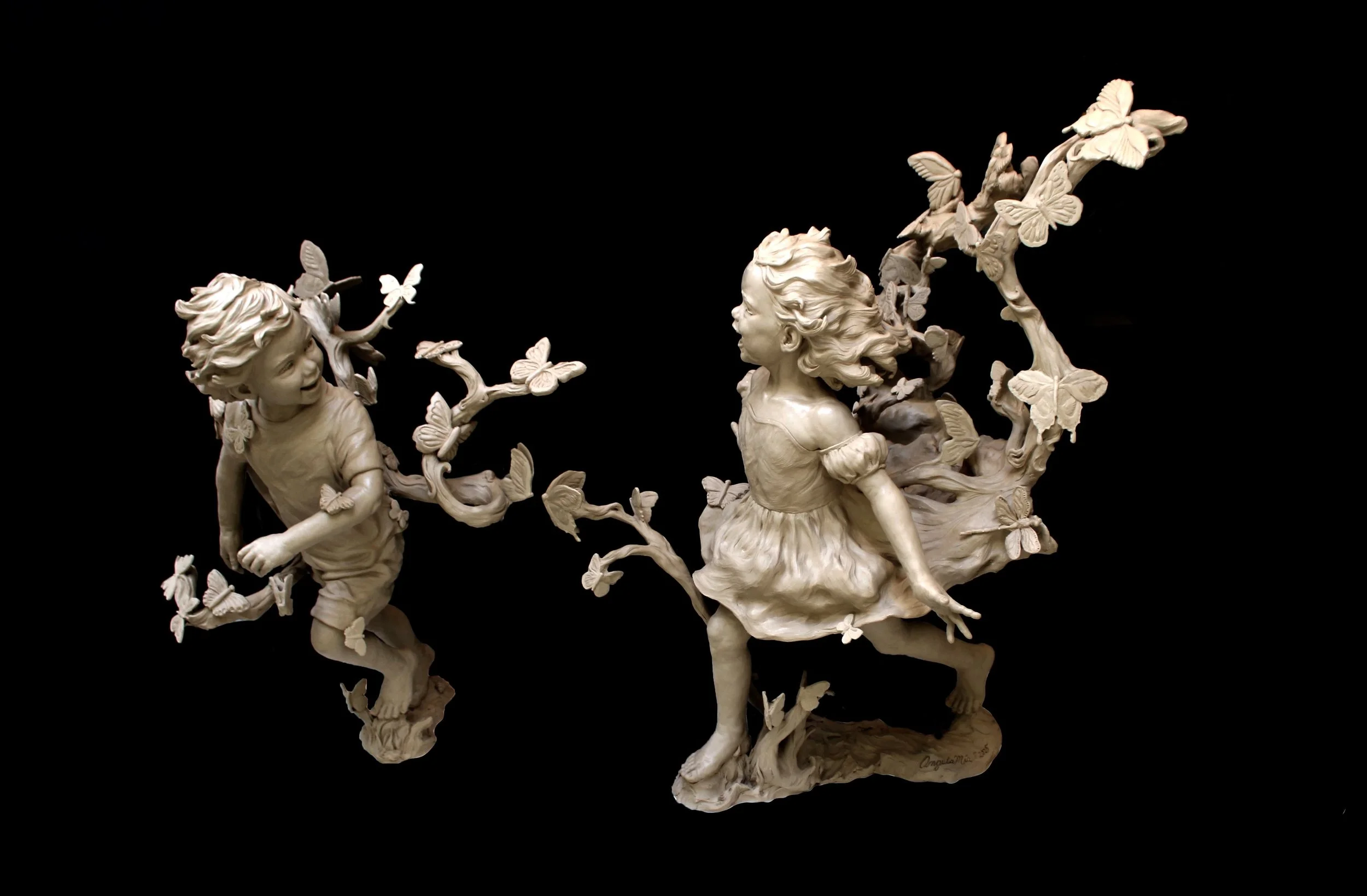 Since sculpting her first bronze in 1994, Angela Mia has been creating figurative bronze sculptures for international collectors, corporations and institutions. Exalting the human spirit through expressive faces and natural body movement has become Angela's recognized trademark. Her work's greatest inspiration is the curious and ever-changing individuality of her children.